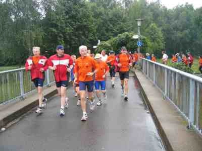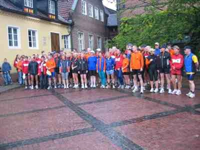 Zunächst trafen wir uns im Burgmannshof, wo wir uns zum obligatorischen Gruppenfoto für den bevorstehenden Lauf mit einigen Wellen eingestimmt haben. Pünktlich um 9.30 Uhr hörte tatsächlich der Regen auf und wir erlebten einen angenehmen Lauf über ca. 43 Minuten. Am Lauf waren ca. 65 Personen beteiligt.