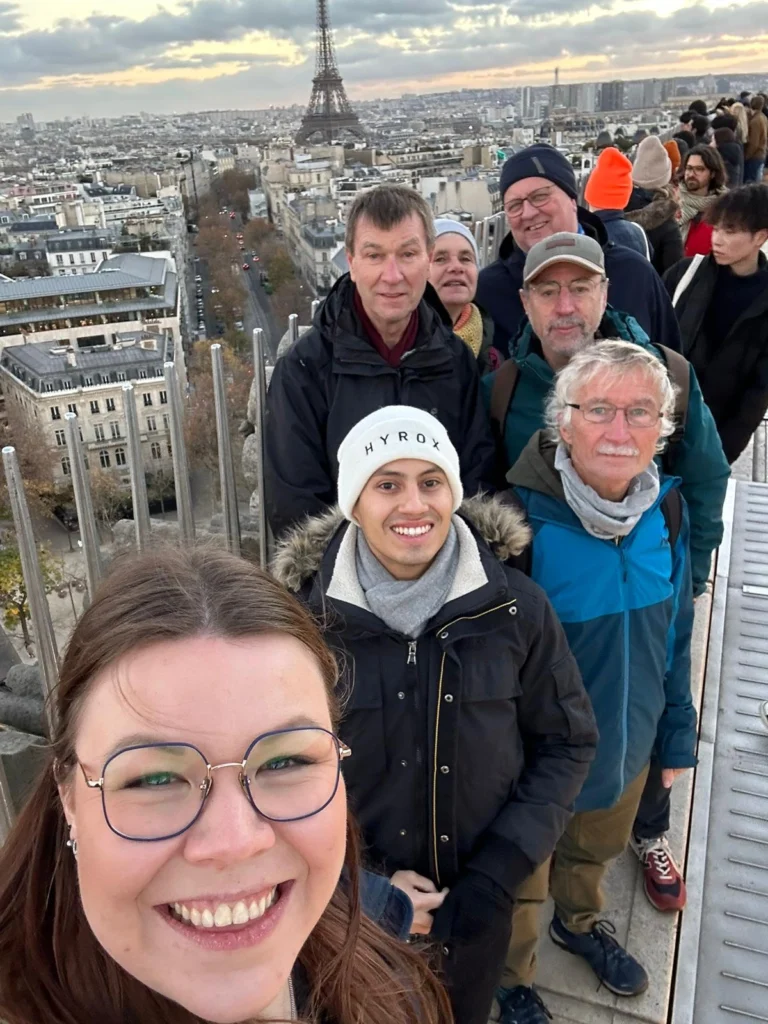 Nach dem Marktbesuch brachte uns der Busfahrer in die nahegelegene Stadt Paris – der Ausstieg für uns war super zentral -direkt am Eifelturm. Bei sonnigem Wetter erkundeten die Reisenden die Sehenswürdigkeiten in Paris sowohl mit der Metro als auch zu Fuß. Mit eintreten der Dunkelheit war die weihnachtliche Beleuchtung der Champs Élysées und der beleuchtete, glitzernde Eifelturm eine ganz besondere Augenweide. Zurück in der Sporthalle von Andrésy wurden wir mit einem Abendessen und diversen Kaltgetränken von den Franzosen verwöhnt. Und so klang der Abend gemütlich aus.