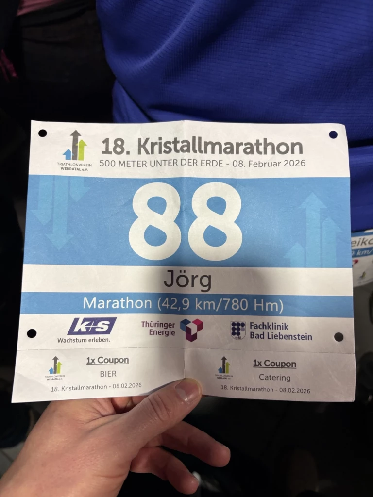 Am 08.02. startete Jörg Köbbe auf einer ganz besonderen Strecke: Beim Kristallmarathon im Erlebnisbergwerk Merkers (Thüringen) ging es 500m unter Tage bei 21 Grad auf eine 3,3km lange Rundstrecke.