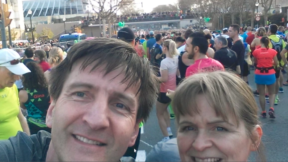 Der Marathon-Tag selbst begann mit einem Frühstück im Hotel, für welches das Restaurant anlässlich des Marathons schon früher als sonst geöffnet hatte. Aufgrund der Nähe zum Start-/Zielbereich war das Hotel sehr stark von