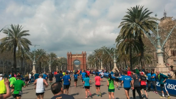 Der Marathonstart erfolgte ab 9:30 Uhr in 5 Wellen, jeweils begleitet von der Hymne „Barcelona“ von Freddy Mercury und Montserrat Caballé und jeder Menge Konfetti – Gänsehaut pur. Die Strecke verlief mitten durch die Stadt, vorbei an vielen Sehenswürdigkeiten wie dem Camp Nou, der Casa Battlò und der Casa Milá, der wundervollen Sagrada Familia, dem Torre Agbar, durch den Arc de Triompf und schließlich entlang des „La Seu“ genannten Doms wieder zum Hafen und weiter zum Ziel an der Placa D’Espanya. Unterwegs wurden Getränke in Plastikflaschen mit Schraubverschluss gereicht. Das war neu für uns, erkannten aber den Vorteil, nicht an allen Getränkestationen Halt machen zu müssen. Wir hatten mit den wiederverschließbaren Flaschen die ganze Zeit ein Getränk bei uns.