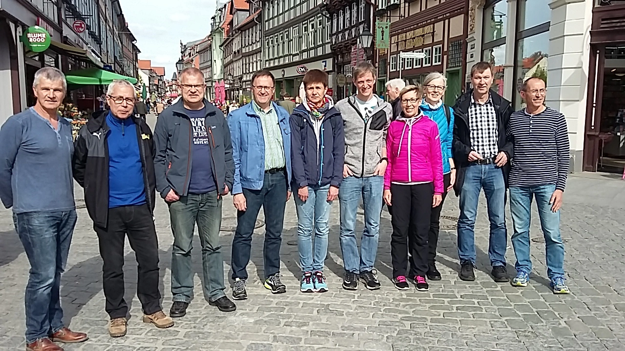 Wir sind mit einer Gruppe von 10 Personen am Freitag nach Wernigerode gefahren. Auf dem Fußweg durch die Innenstadt zum Orga.-Büro haben wir weitere Emsländer getroffen, die ebenfalls ihr Startunterlagen abholen wollten.