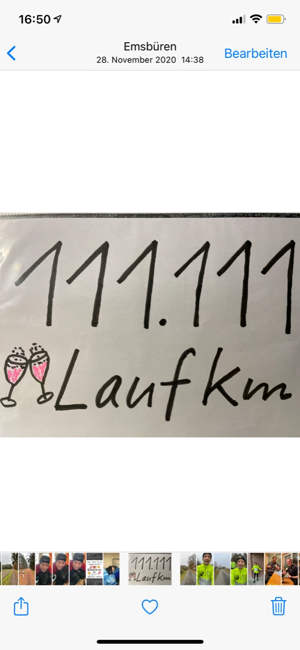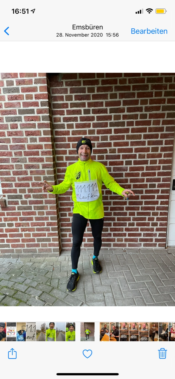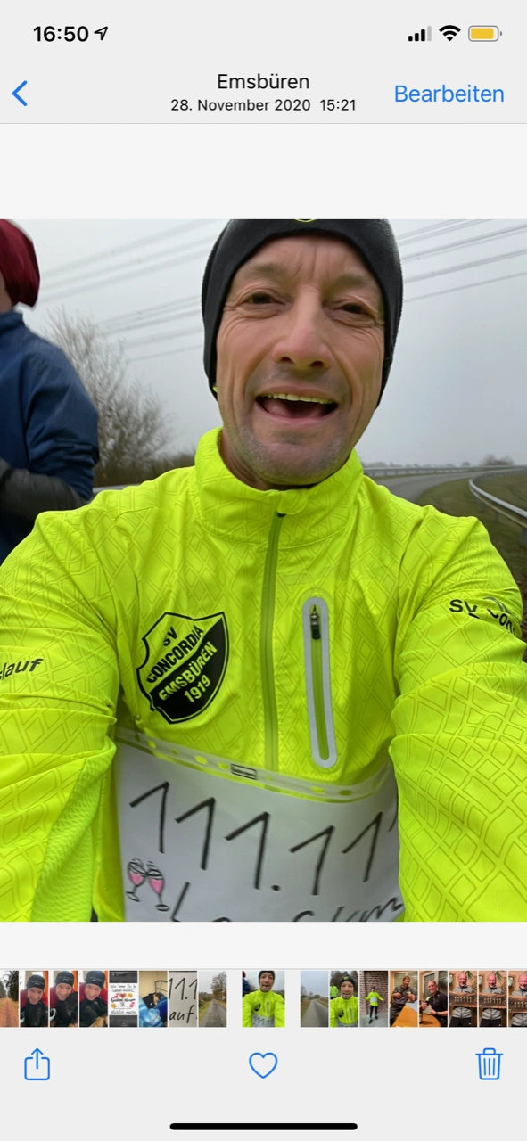 Hallo Ingo, hier ein paar Fotos von meinem 111.111km den ich am 28.11.2020 mit 2 Lauffreunden Thomas und Sebastian gelaufen bin :-). Natürlich mit einem 11,11km Lauf ;-). Vielleicht kannst Du die Fotos ja für die Homepage der Lauffreunde gebrauchen :-)!?