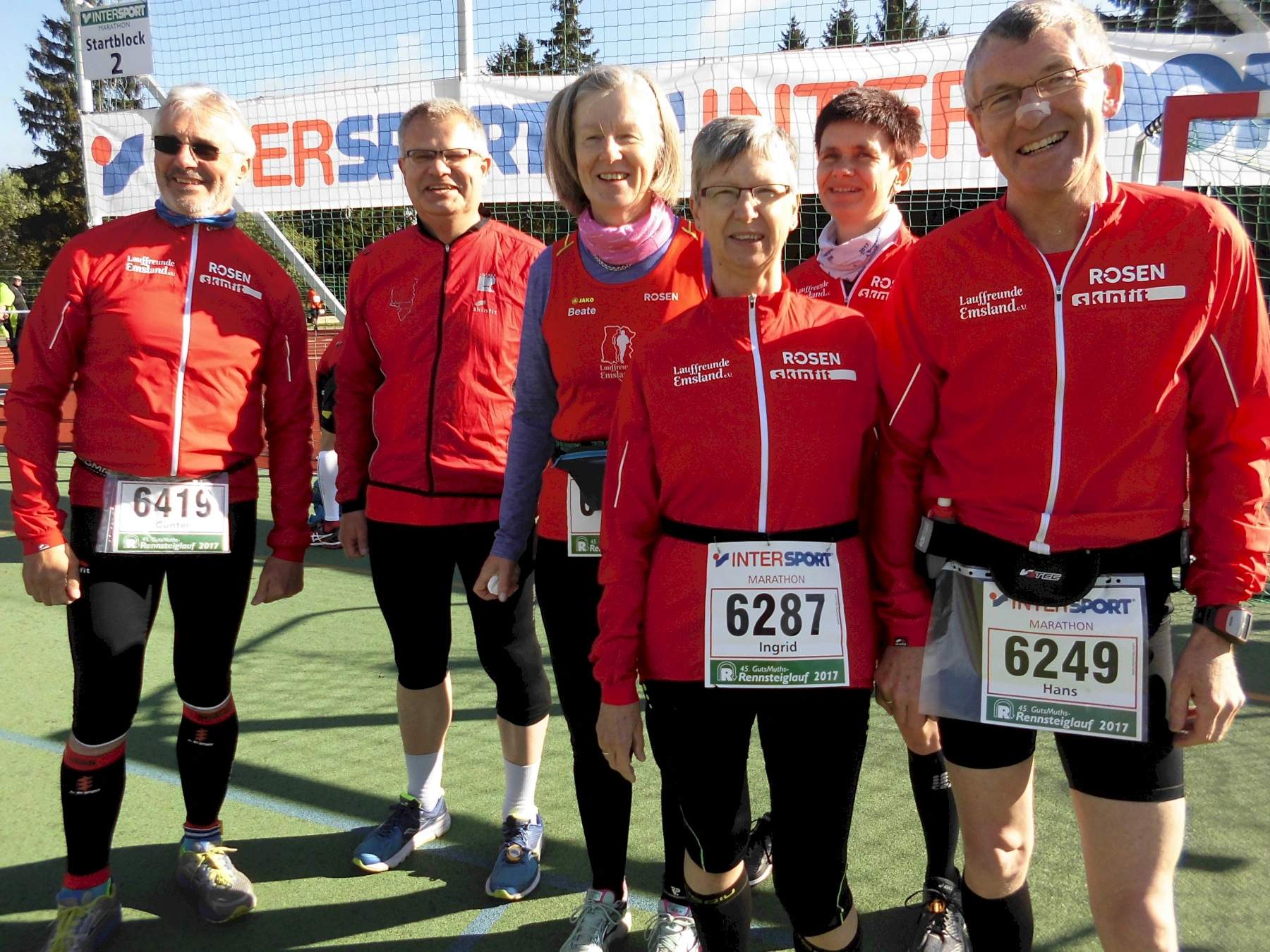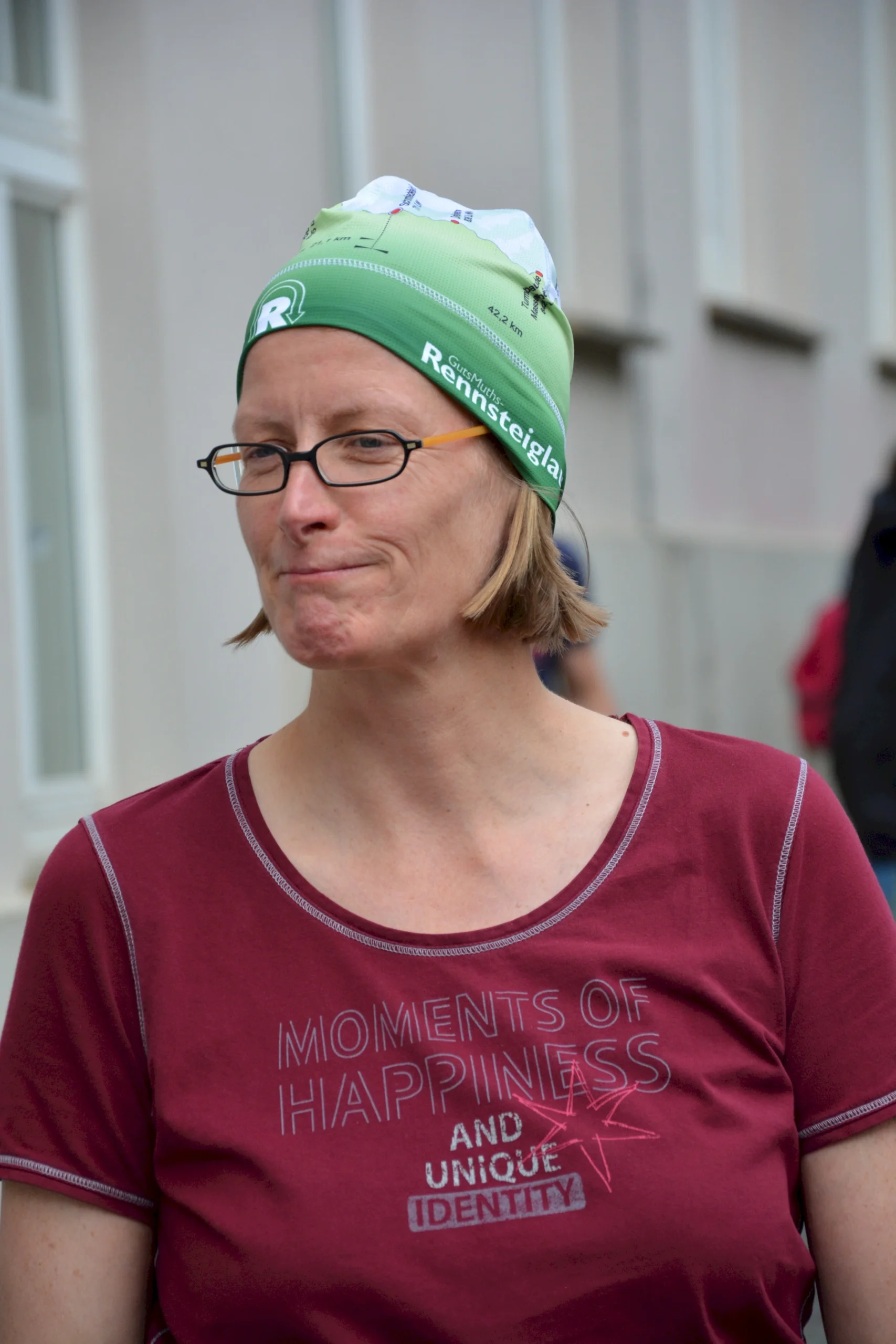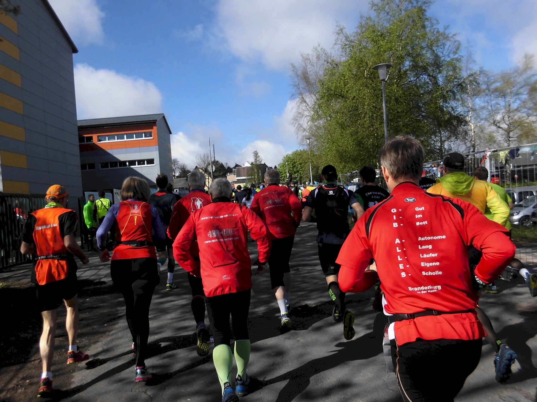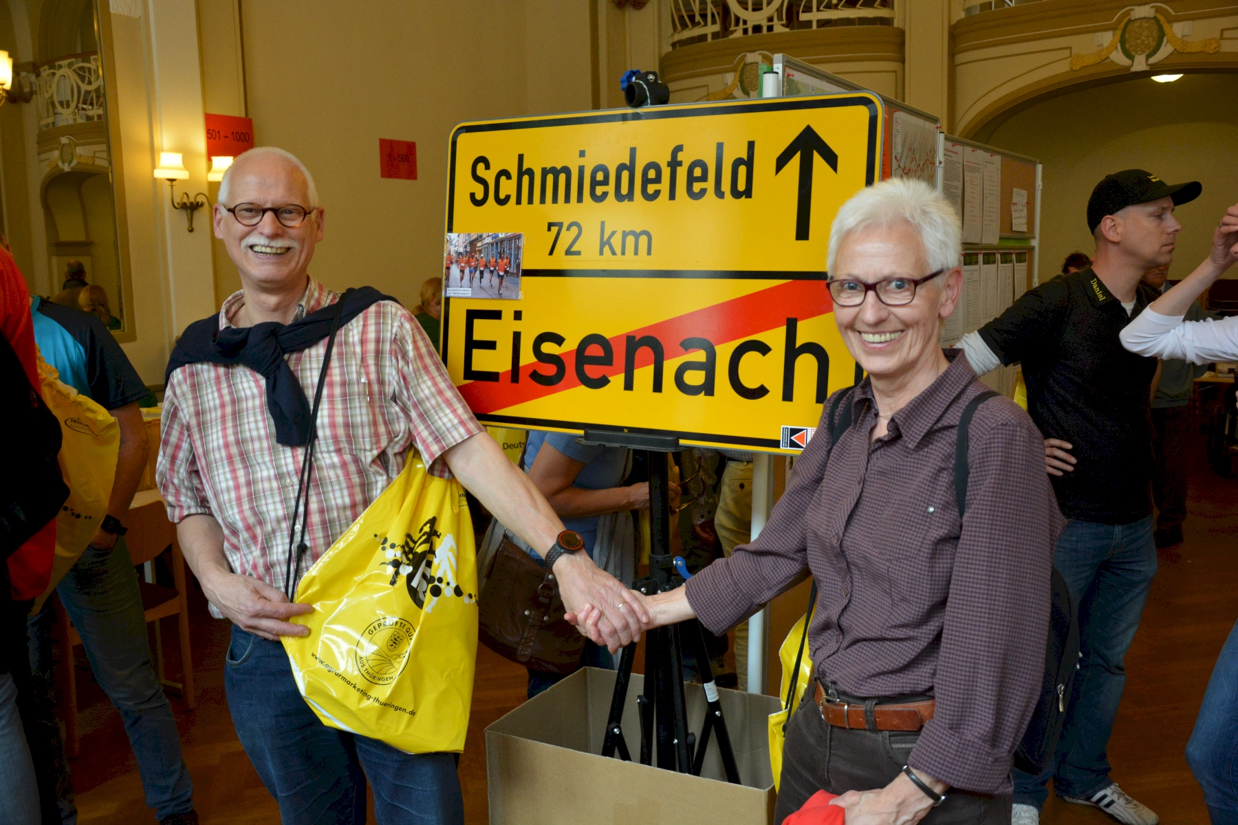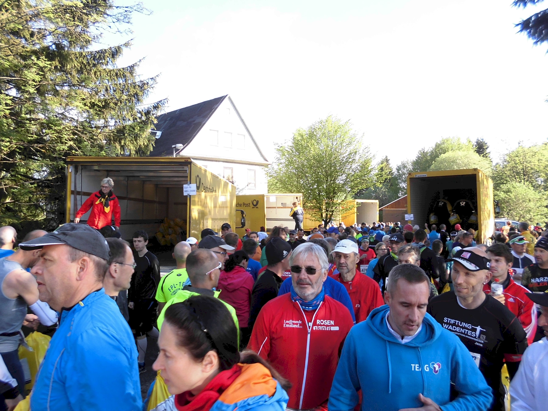 Die folgende Nacht war kurz, um 04.30 Uhr wurde gefrühstückt. So gestärkt begaben sich die „Ultras“: Ingrid und Hermann Jänen, Angela, Sonja, Klaus und Stefan zum Start (06.00 Uhr) am Marktplatz von Eisenach. Sonja und Stefan nahmen den Supermarathon, der in diesem Jahr von 72,7 km auf 73,5 km verlängert worden war, zum ersten Mal in Angriff!