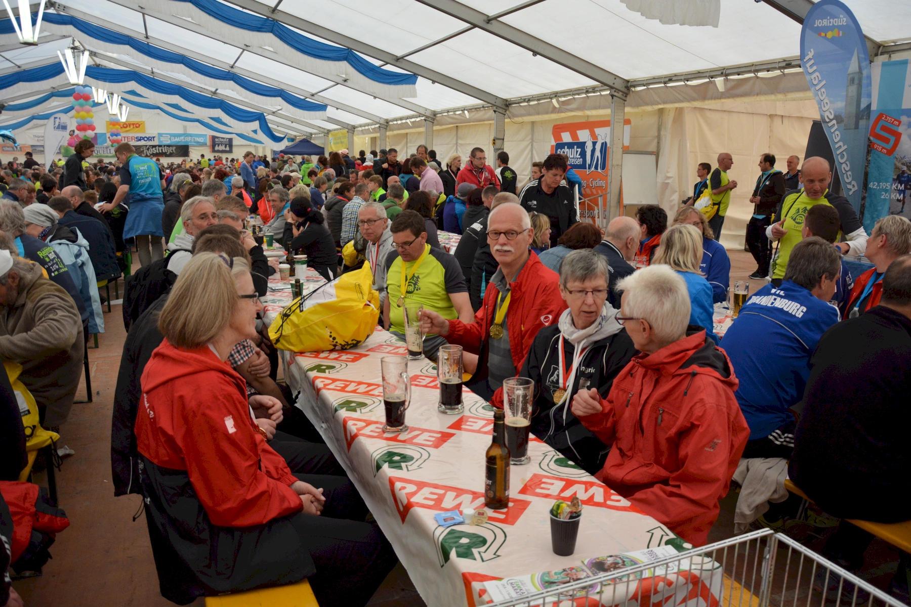 Wir begannen die „Siegesfeier“ zunächst im Festzelt in Schmiedefeld und setzten sie in Eisenach zunächst beim Griechen und dann im Hotel fort. Jeder berichtete von seinem ganz persönlichen Gefühl während und vor allen Dingen auch nach dem Erreichen des Ziels.