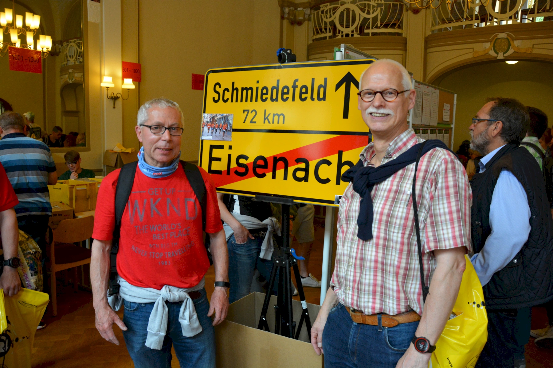 Am Freitag, 19. Mai, starteten wir, sechs Lauffreundinnen und neun Lauffreunde, morgens mit zwei Bullis in Richtung Eisenach. Wir wollten am Samstag, 20. Mai, am Rennsteigmarathon (Ultra-) teilnehmen.