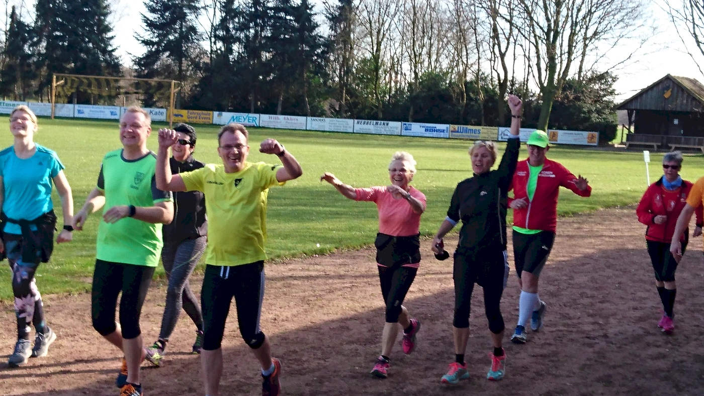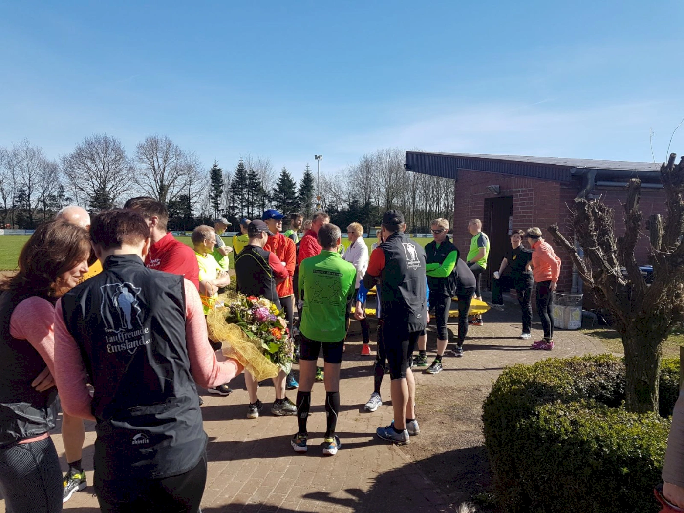 Läufer und Läuferinnen in Oberlagen eingefunden, um gemeinsam 10 oder 20 Kilometer zu laufen. Die Laufstrecke führte zum größten Teil entlang der Ems und war landschaftlich ein Genuss und wunderschön.