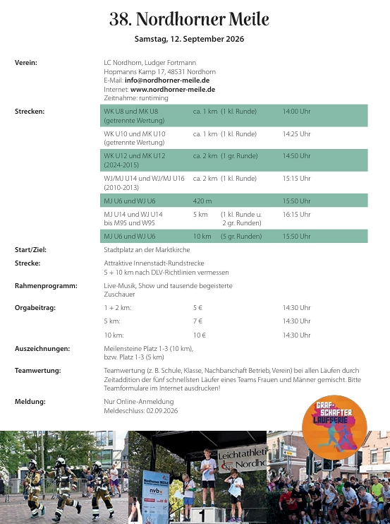 12.09.202638. Nordhorner MeileOrt: Stadtplatz an der MarktkircheVeranstalter: LC Nordhornzur offiziellen Webseite