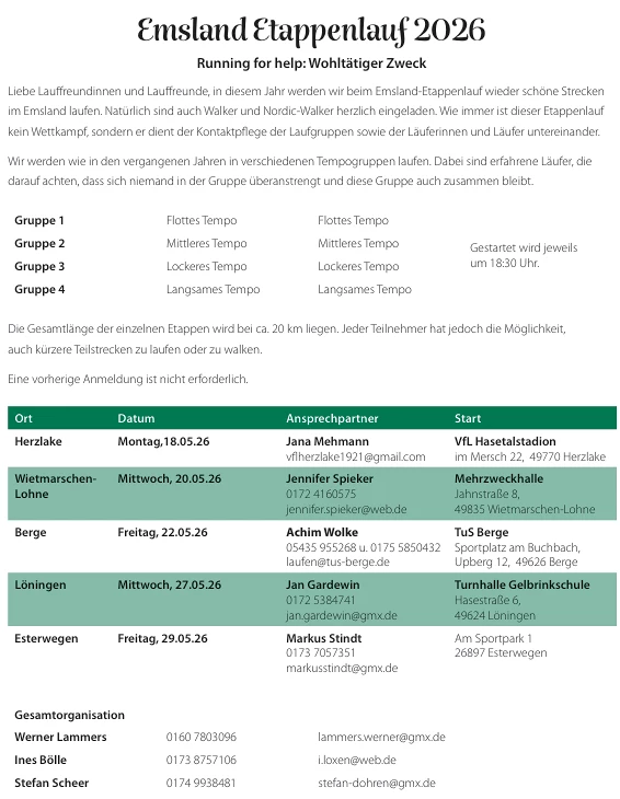 weitere Infos im Laufkalender der LFE