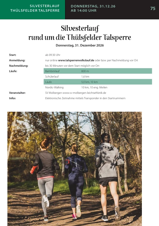 31.12.2026Silvesterlauf rund um die Thülsfelder TalsperreVeranstalter: SV Molbergenzur offiziellen Webseite