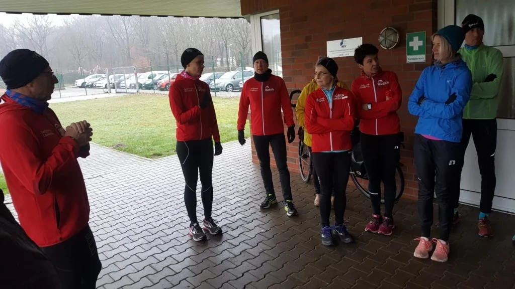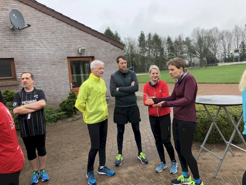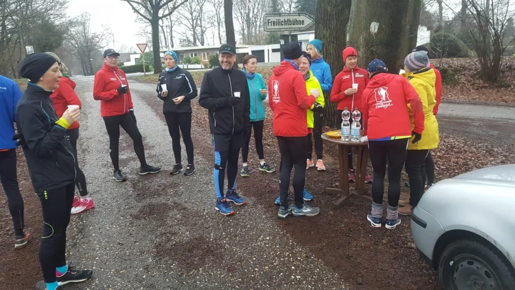 Ca. 45 Läufer/-innen machten sich um 14 Uhr auf die 10 bzw. 20 km Laufstrecke. Vorbei am Schloss Clemenswerth, um das Spahner Südholz und zurück durch den Glockenschlag fanden sich alle, trotz Regen, Hagel und Sturmböen, wieder wohlbehalten in der Sporthalle ein. Auch in Sögel bot der Lauftreff zum Abschluss Tee und ein Stück Kuchen „auf die Hand“ an.