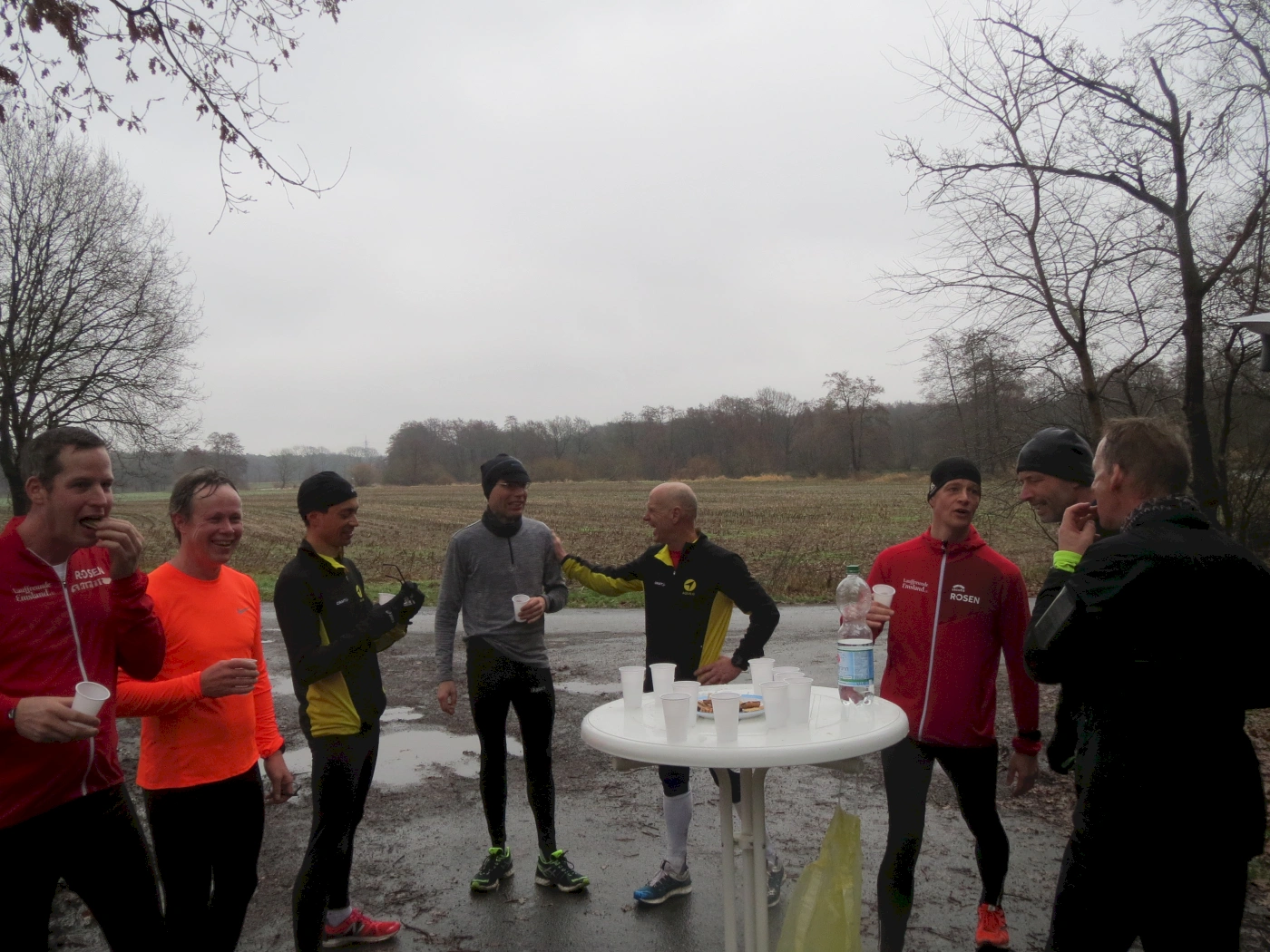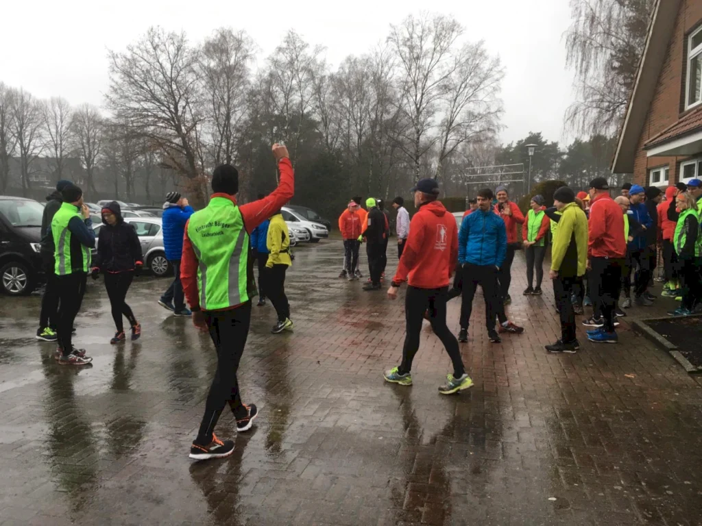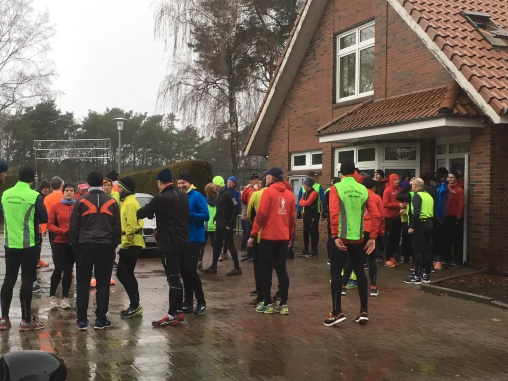 Etwa 50 Laufbegeisterte wollten dem Wetter trotzen und haben sich auf den Weg nach Börger gemacht. Nach Begrüßung und Einteilung der Gruppen durch den Organisator Claus Wöste gingen die Läufer und Läuferinnen auf die 10 bzw. 20 km Strecke. Die meisten hatten sich auf einen Regenlauf eingestellt, glücklicherweise regnete es nur in den ersten Minuten, so dass die Stimmung unter den Teilnehmern gut war. Pläne für das Laufjahr wurden geschmiedet. Das anschließende gemütliche Beisammensein wurde wie gewohnt durch ein super Kuchenbuffet versüßt.